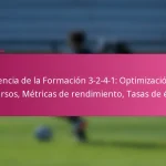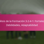 La formación de fútbol 3-2-4-1 es un esquema táctico que equilibra fuertes capacidades ofensivas con una sólida estructura defensiva, presentando tres defensores, dos mediocampistas centrales, cuatro mediocampistas ofensivos y un delantero. Esta formación enfatiza el control del balón y el juego ofensivo, permitiendo a los equipos mantener la posesión mientras se adaptan a diversas situaciones del partido. Sin embargo, también presenta desafíos, como la vulnerabilidad a los contraataques y la dependencia de la condición física de los jugadores.